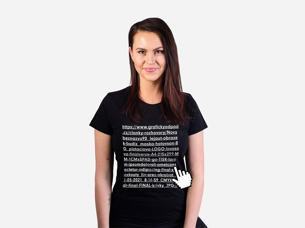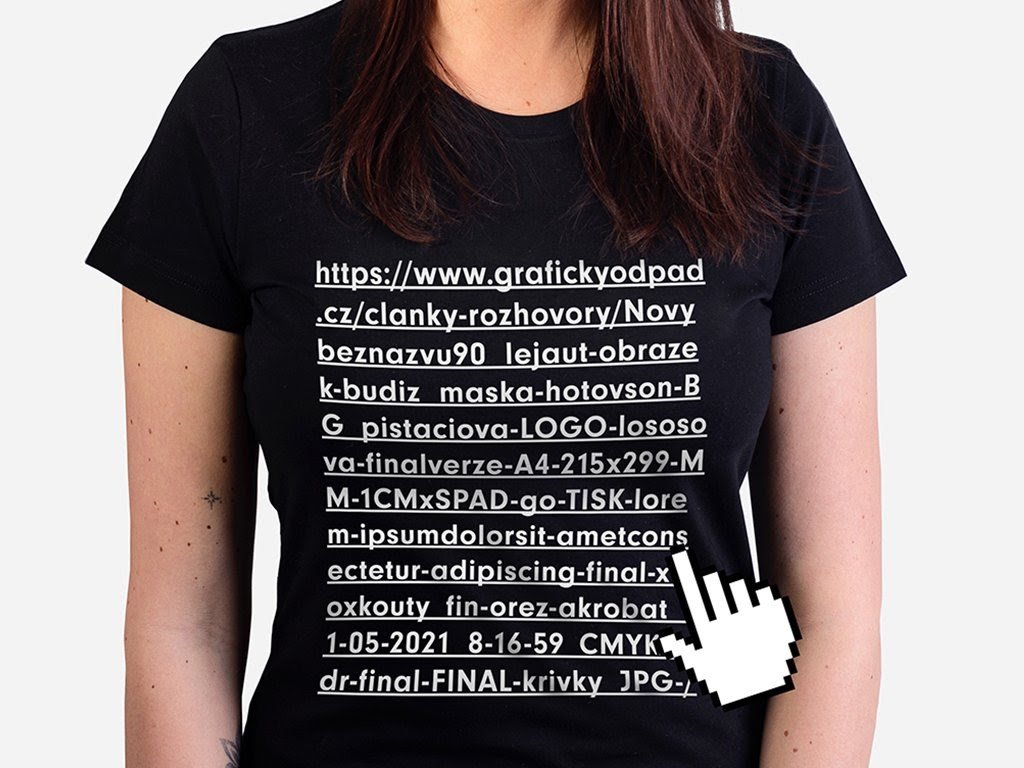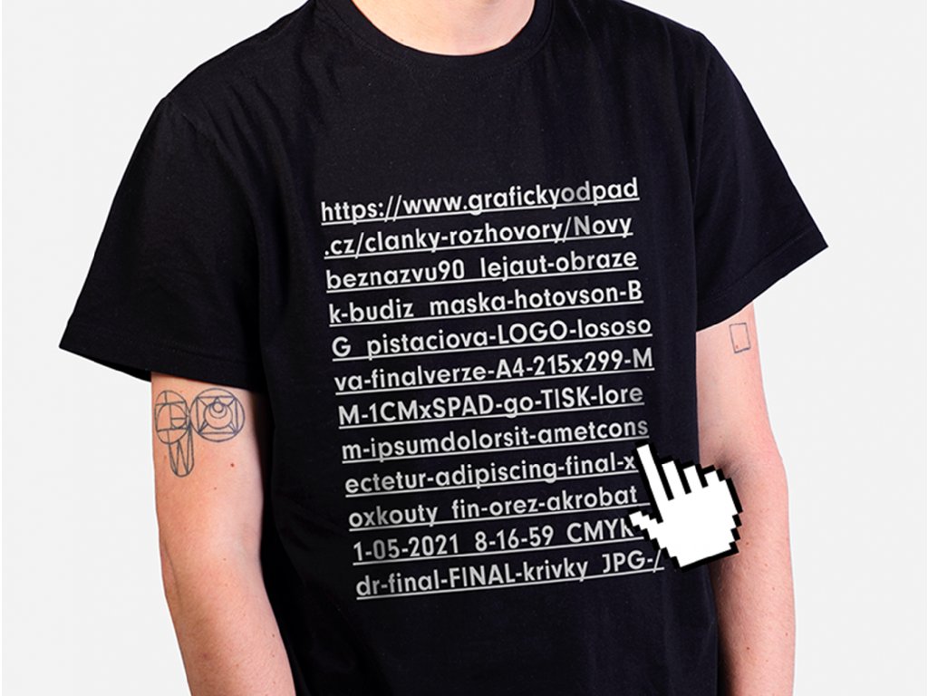 Motiv trička je inspirovaný hypertextovým odkazem, který se nachází v off-line prostředí. Můžeme se s ním setkat například u amatérské tvorby plakátů, bannerů, brožur a dalších reklamních materiálů, ale bohužel na něj nemůžeme kliknout. To pozorovateli značně komplikuje cestu k zobrazení konkrétní webové stránky. Čím delší a složitější odkaz v off-line prostředí nalezneme, tím je vzácnější.